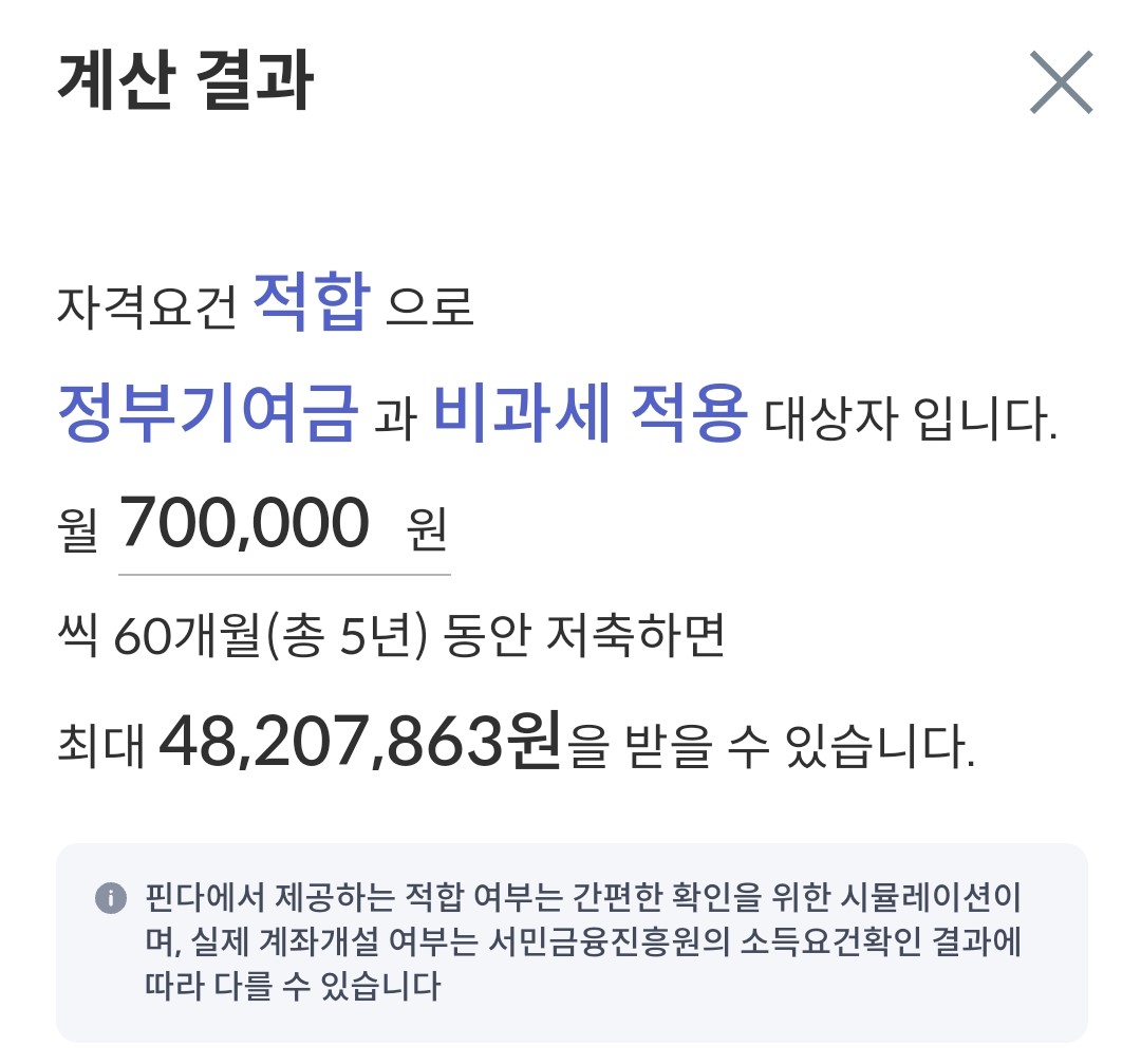 청년도약계좌 가입을 망설이고 계시거나, 어느 정도 금액을 받을 수 있는지 궁금하신 분은 핀다 청년도약계좌계산기를 활용하셔서 확인해 보시길 바랍니다.
