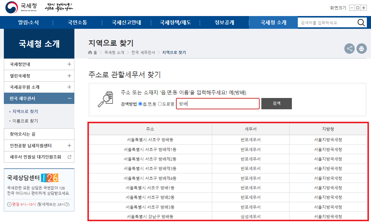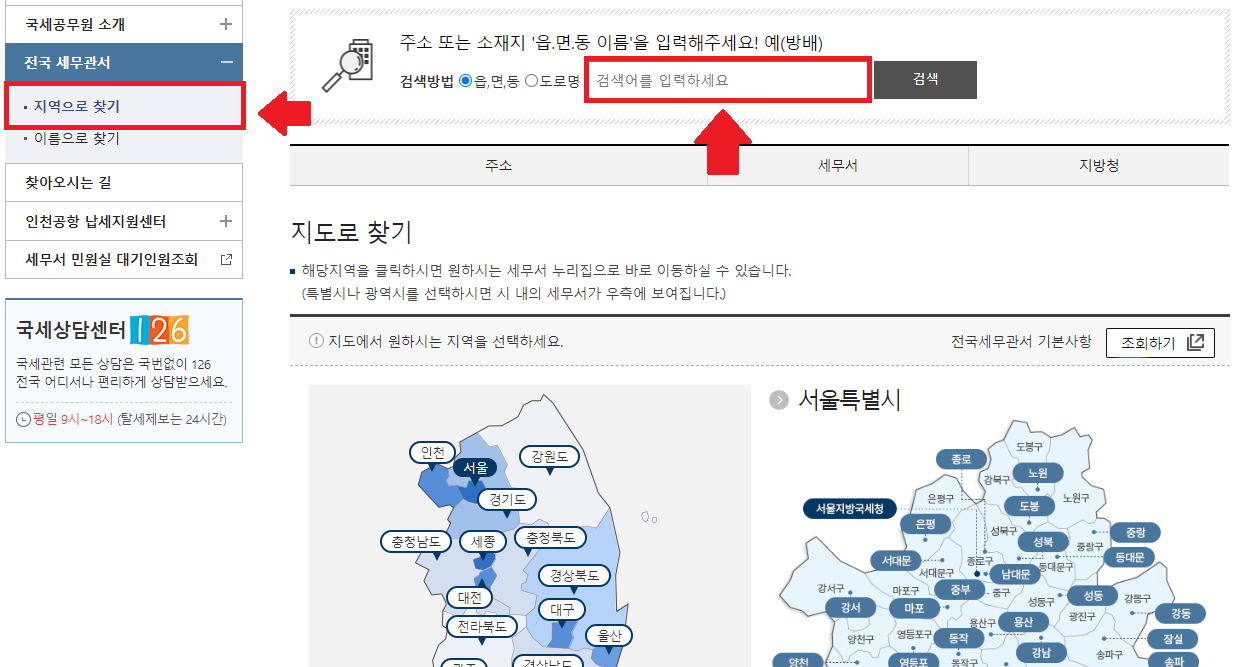 가까운 세무서 찾는 방법